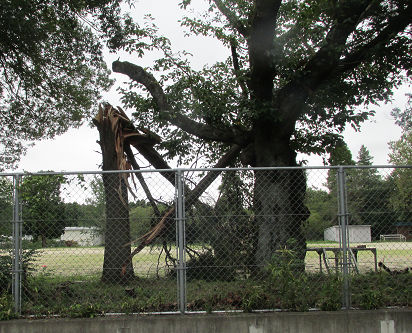まあ、道路側に倒れていないので、当分は、他の復旧優先で放置かな。