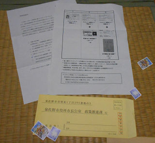 大阪府泉佐野市から、書類が足らんよと手紙が来た。