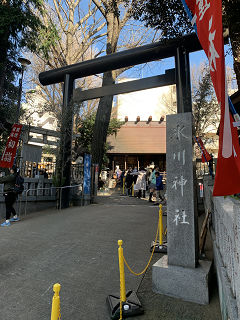 神紐だとかで、大混雑、賽銭まで2時間だって。警備の人にお守りだけなら、