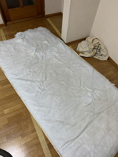 敷き布団の生地もボロボロなので、来客用を自分に使うことにして廃棄。