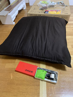 予定だったが、大きい座布団が欲しかったので、実家で袋を縫ってもらった。