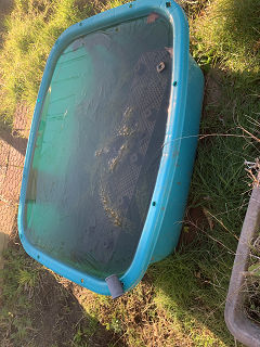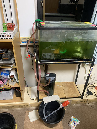 月曜日、朝起きてメダカにえさをやろうしたら、足がべちゃ。