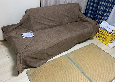 ソファカバーは、これとグレーの2種類でサイズ違いで各3つ。