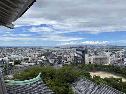 城は、鉄筋コンクリート。空襲のあとで新築。でもおかげでエレベーターはないけど階段は普通の幅。ハシゴみたいな急でないから楽で良い。