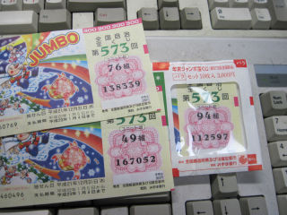 他の4等の10万なら素直に喜べたのに、運も実力のうちというか、相変わらず、詰めが甘いなぁと自己採点してます。