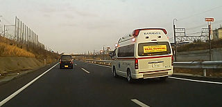 その後、千葉ニューのイオンの帰り道、はて、バイパス道路なんですが、救急車の速度が異常