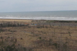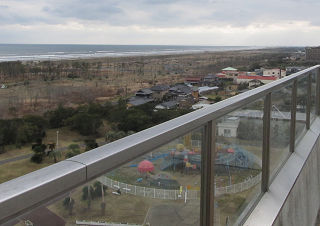 浜辺もかさ上げ中。この道路も津波後は、廃棄物で山盛りでしたなぁ。