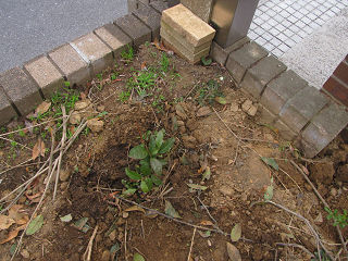 4cmぐらいの切り株を抜き終わったところに、枝を細切れにして 糠とまいといた。