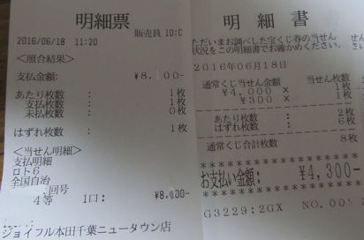 半年近く当たらなかったけど、loto6も4等当たってた。