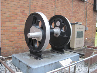 今の新橋駅前の、機関車の動輪。機関車自体は駅の向こう側かな。