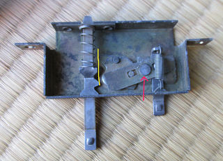 古い方。赤矢印が、錆・グリス切れで、動きが渋くなって、
