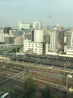 スカイツリーもよく見える。東京タワーは、ビルの上の方にちょこっとだけ