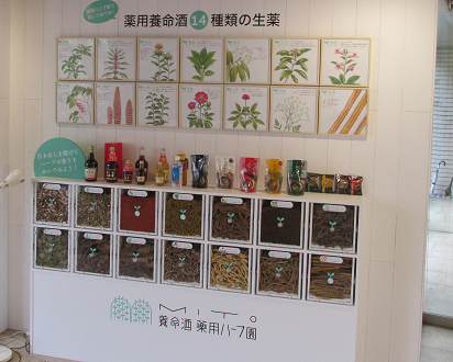 養命酒の成分の植物展示。
