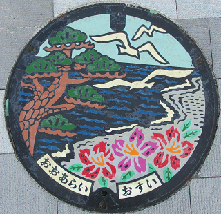 大洗駅から、海岸までの1キロ無い程度の通りに一つだけ有る特注マンホール