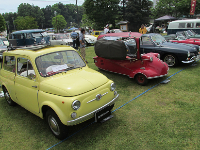 定番展示のイセッタとメッサーシュミット。楽しいそうな開閉手段