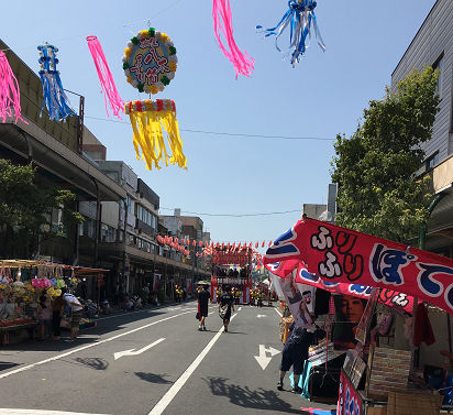 祭りは、夜がメインなので、アーケードの影で少し人が居る程度