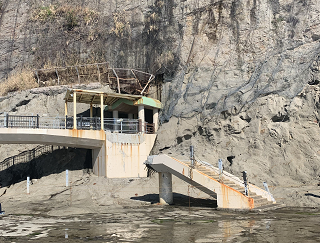 階段が途中で消えていたり、元々の物と思われる道と階段が、岸壁沿いに残っていたり。