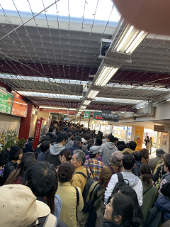 人混みがひどすぎて、時刻不明。駅に入って、一旦電車が出て行って、次の電車で乗れました。