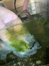 専用スポンジとか、いろいろ水槽のガラス面の苔取りには、苦労していたが、