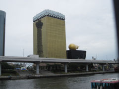 隅田川からアサヒビールのビルに写るツカイツリー