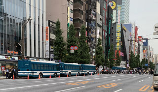 秋葉原で、機動隊車が10台と加えてパトカーなど大量。
