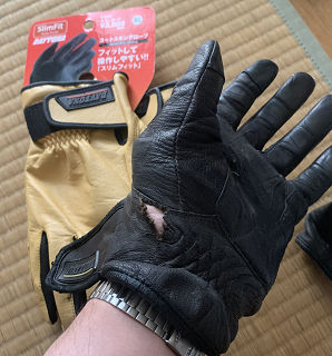 私もデイトナのグローブ使ってます、穴あきじゃない方ですが一年中このグローブで走ってます。ゴートスキン丈夫ですよね。色は黄色、予備にもう一双黒ストックしています。