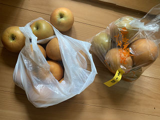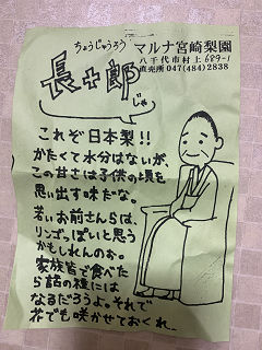 一応、はじめのマルナ宮崎梨園(宮崎梨園とは違います。「まるなんとか」って似てる名前の店が多すぎ)に行く途中で、二十世紀、長十郎と紙が書かれていた、国道沿いの「丸昭梨園」に戻って、聞いてみたら、2袋だけあった。