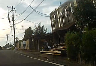 途中蕎麦屋の屋根が全部飛んでた。あと、電柱と電線になんか引っかかってる。