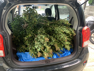 車に積んでで二往復。ブルーシートがココで活躍しました。