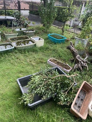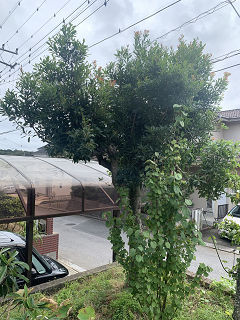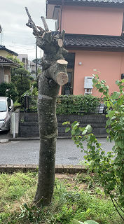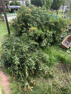 暴風で、近所に飛ぶと迷惑なので、大きい木は撤去の方針。