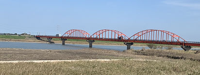 同じ位置から上流側。左手側はスーパー堤防なので、冠水はしても、
