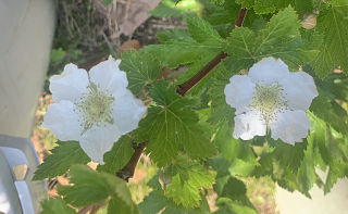 花は、カジイチゴ。美味しいけど大きさと輸送考えると商品化は無理か。