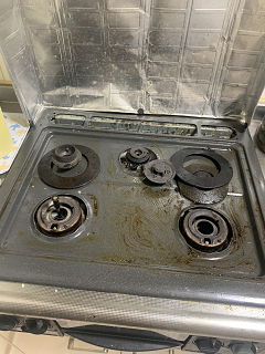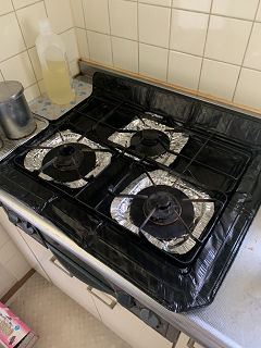 正月に買ってる新聞紙で、油汚れを取りながら取り外し中。