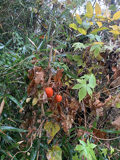 確かこの辺に生えていたはず。で、見つけたカラスウリ。