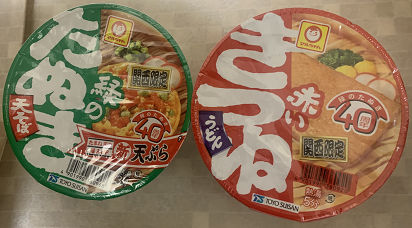 以前、人気投票をしたら「赤いきつね」が勝ったらしい。