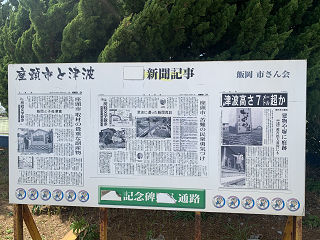 跡この新聞記事は、入り口の左側にある座頭市の石碑横にありました。