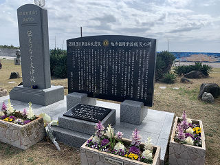 設置されました。海岸と資料館とで、いろいろ検討したけど慰霊祭を行うこの場所に決めたそうです。