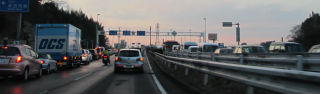 渋滞の風景。これでも割り込もうとする信じられない人もいます。