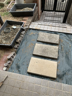 除草シートを引いた。
