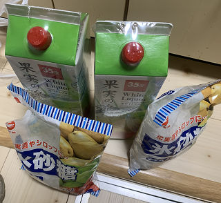 一年たつと右の4リットル用。その時はプラムも入れてみた。