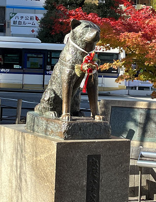 忠犬ハチ公も飾り付き。あと人混みがすごい。