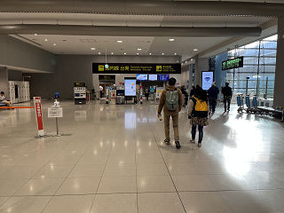 郵便局とコンビニが有ったところが手荷物検査入り口。