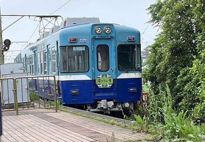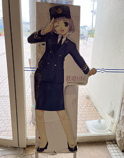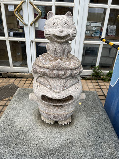 貧乏な石像が似合うと言っては失礼な桃電 銚子電鉄。