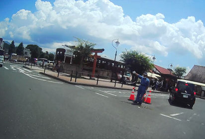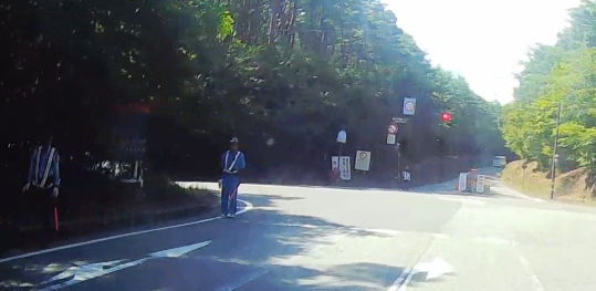 加えて、旗ふって道を案内していたが、ここでチュ謝しようとして二輪禁止とテプラしてた。