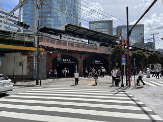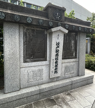 駅に行く途中。江戸歌舞伎発祥の地。横に青物市場の石碑もあったよ。