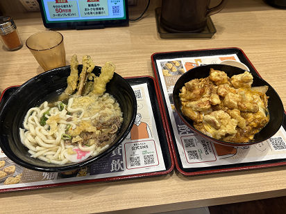名物はゴボ天うどんとおはぎ。このうどんは1.5玉