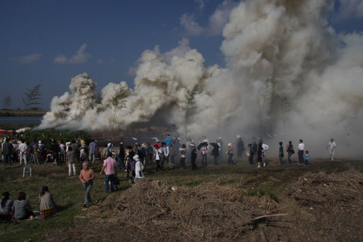 今回は、川の方に火と煙が、行きました。