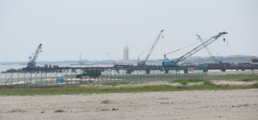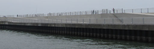 港の堤防が、フラットデッキから、かさ上げして、スロープや階段も作ってました。 奥側が新規部分。土台も震災の半年前ぐらいに改修したところだったんですけどね。