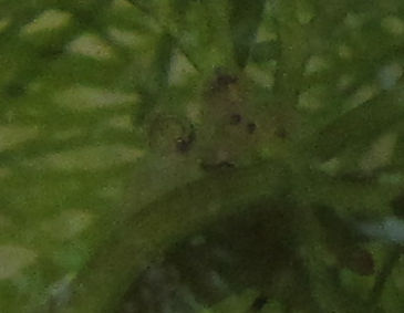 指の先、画面中央のやや上。壁近くに2匹居ます