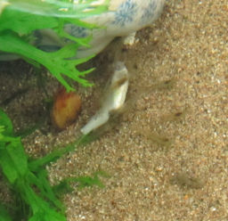 一匹だけ、エビに囲まれて死んでいたので、卵でも産んで衰弱死したのかも。